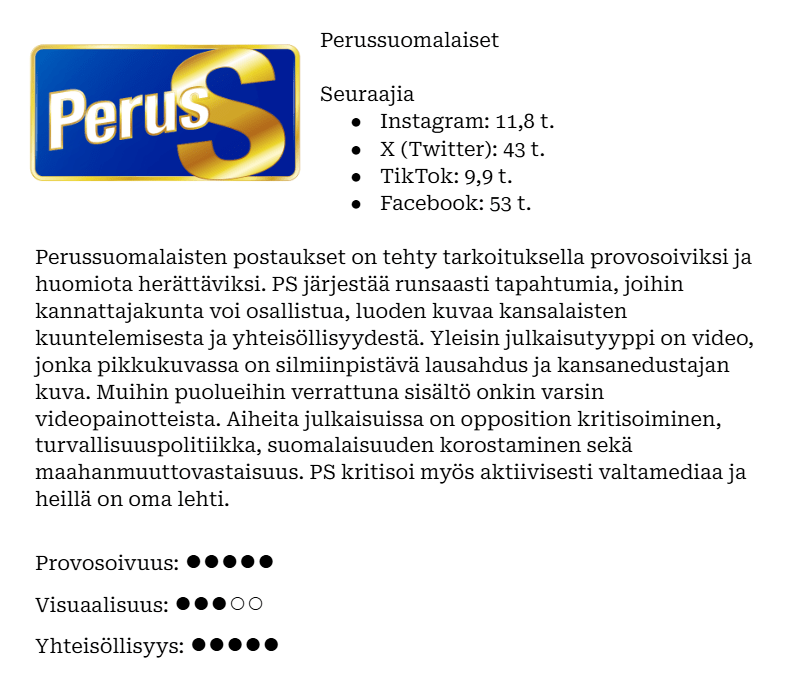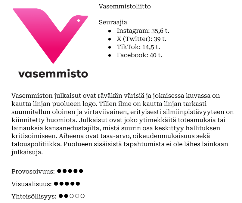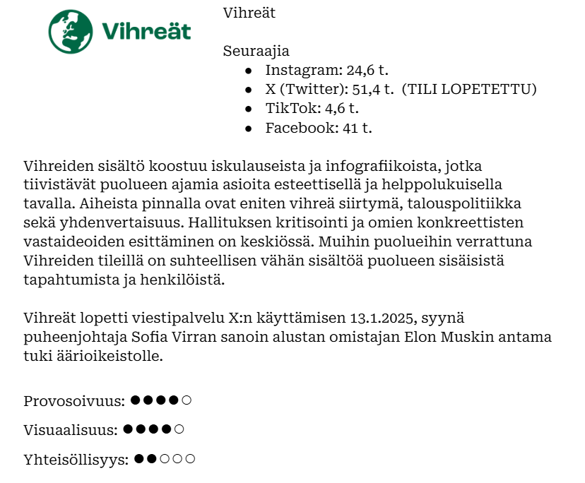 - Kuinka paljon tileillä on sisältöä puolueen tapahtumista ja jäsenistä?